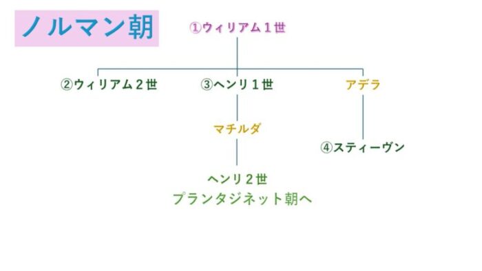 それでは、ここでノルマン朝を家系図にしてまとめておきましょう。